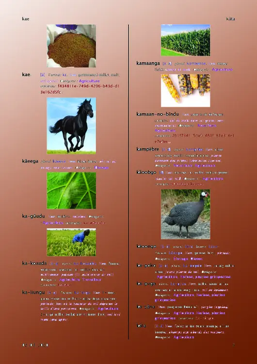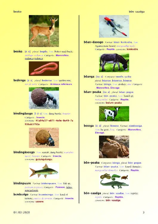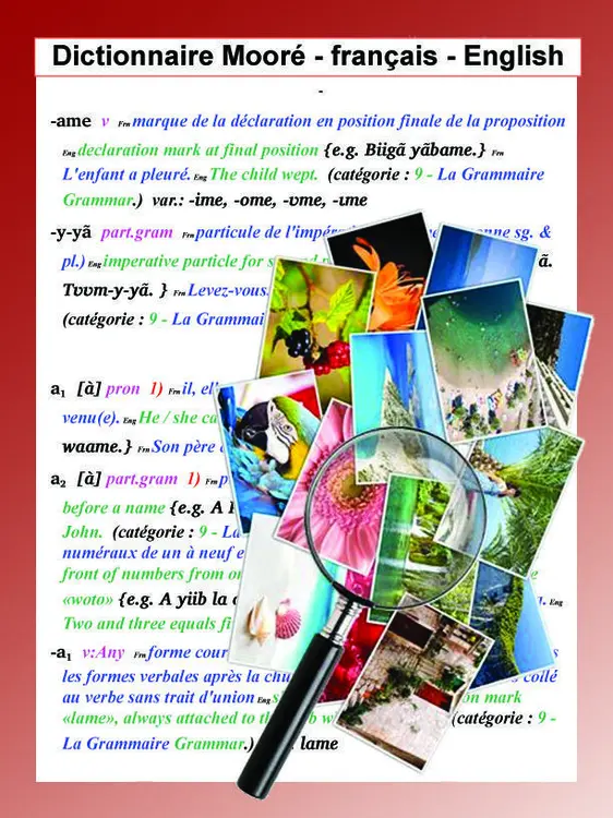 Dictionary Mooré - French - English with images, in pdf format that you can download.