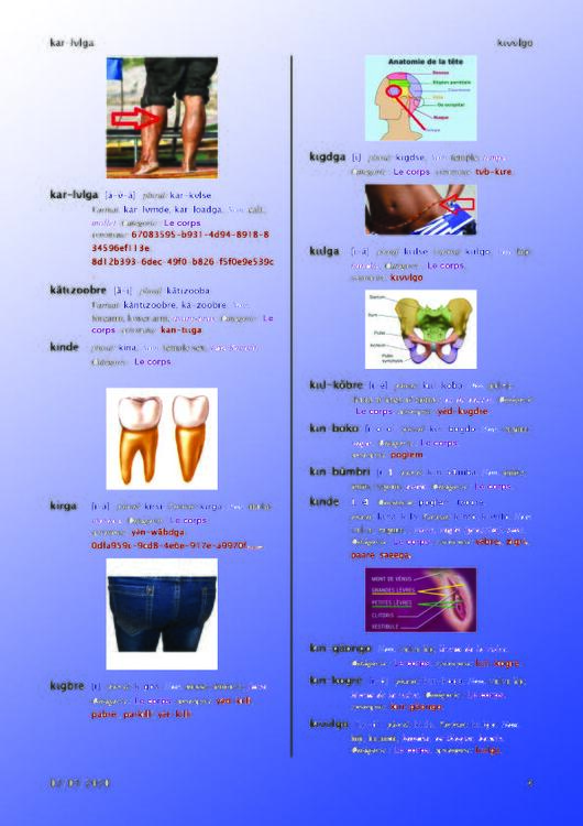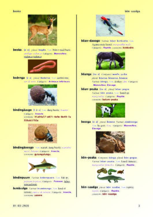 Dictionary Mooré - French - English with images, in pdf format that you can download.